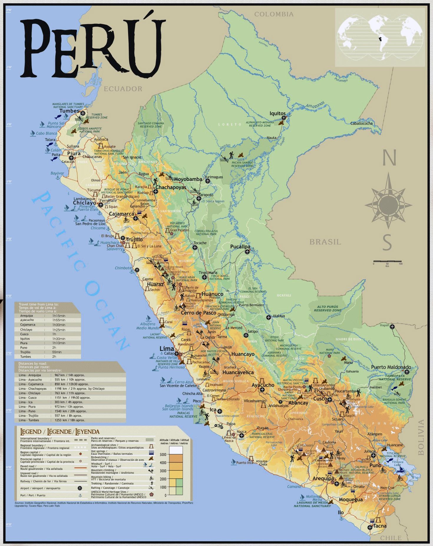 Mapa Peru podróże. Mapa podróży w Peru (Ameryka Południowa - Ameryka) do druku. Mapa podróży w Peru (Ameryka Południowa - Ameryka) pobierz.